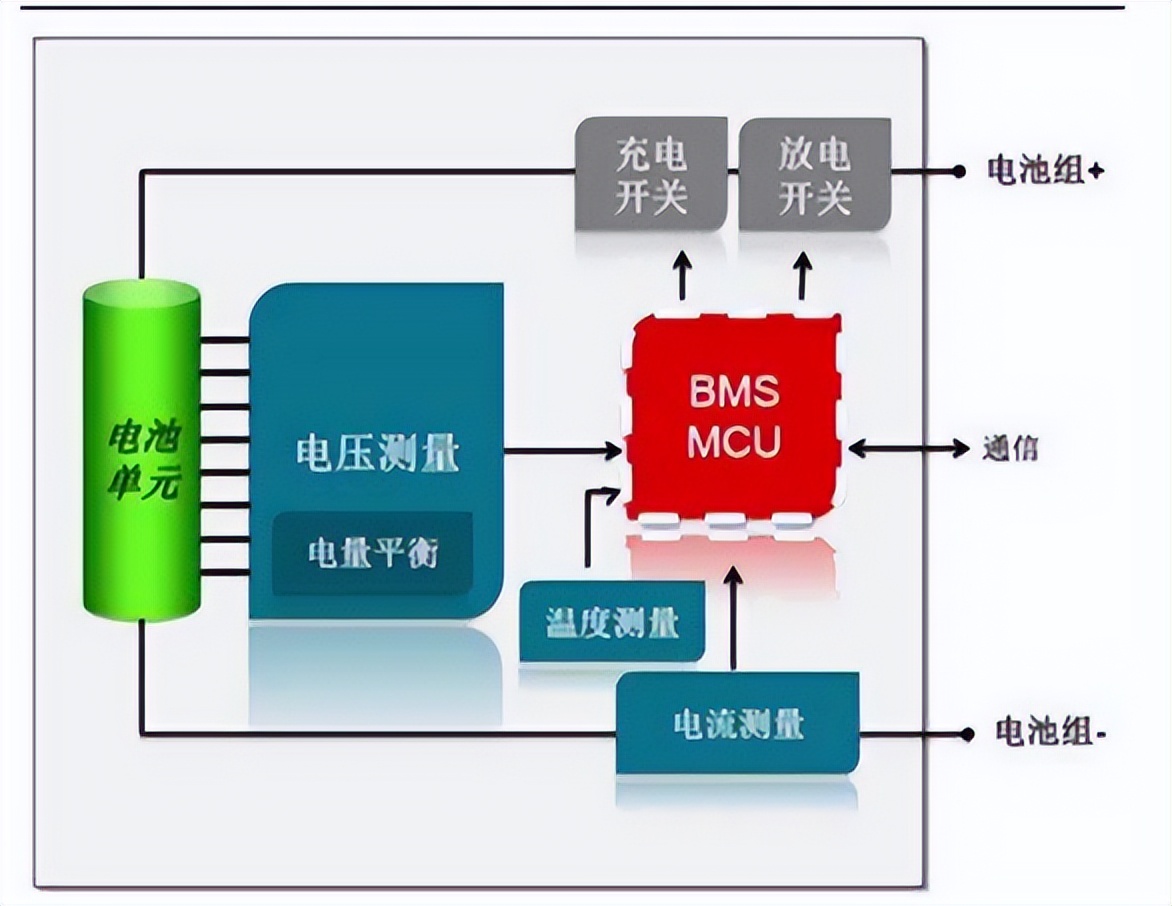 电池管理系统BMS:担任感知角色,主要负责电池的监测、评估、保护以及均衡等;