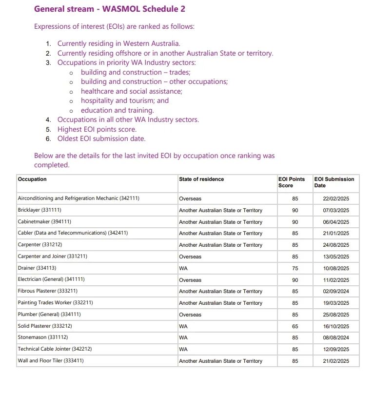 因为申请积压情况严重,西澳首轮获邀的分数不低,普遍集中在75分及以上。个别热门职业甚至高达90分,预计未来会有所下降。