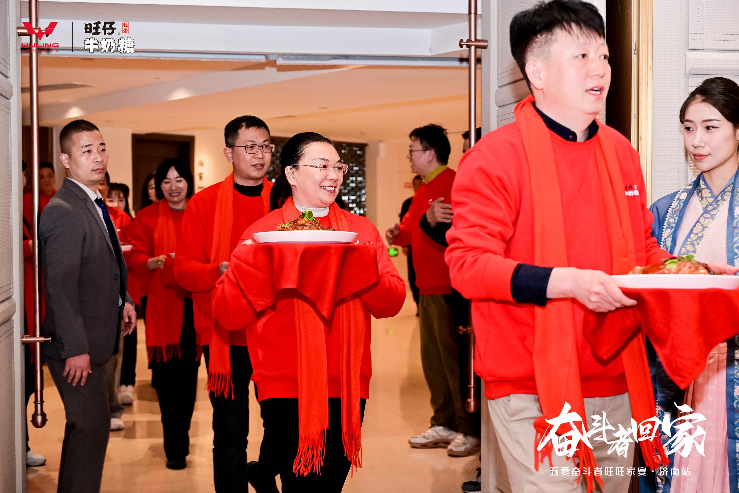 家宴上最让我动容的一幕,是五菱的区域领导们系着围裙,亲手给车主们上菜。见过领导敬酒、致辞,却从没见过品牌高层放下身段,端着热气腾腾的鲁菜穿梭在餐桌间,和车主们唠家常、问需求。“既然是家宴,就没有上下级,咱们都是一家人!” 一位领导的话,让现场掌声雷动。酒过三巡,车主们自发拉起了家常,从用车技巧聊到生意经,从孩子教育聊到新年规划,不少人当场扫码建了车主群,约定年后一起组织自驾游。这种自发形成的社群凝聚力,远比任何广告都更有说服力。
