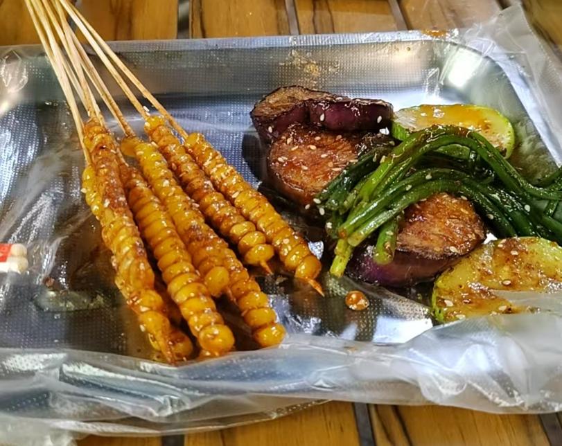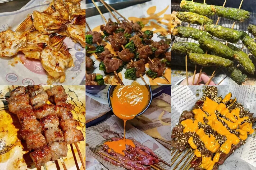 烧烤摆上来了,卖相果然和南宁的烧烤不太一样,是比较「水灵」挂的。