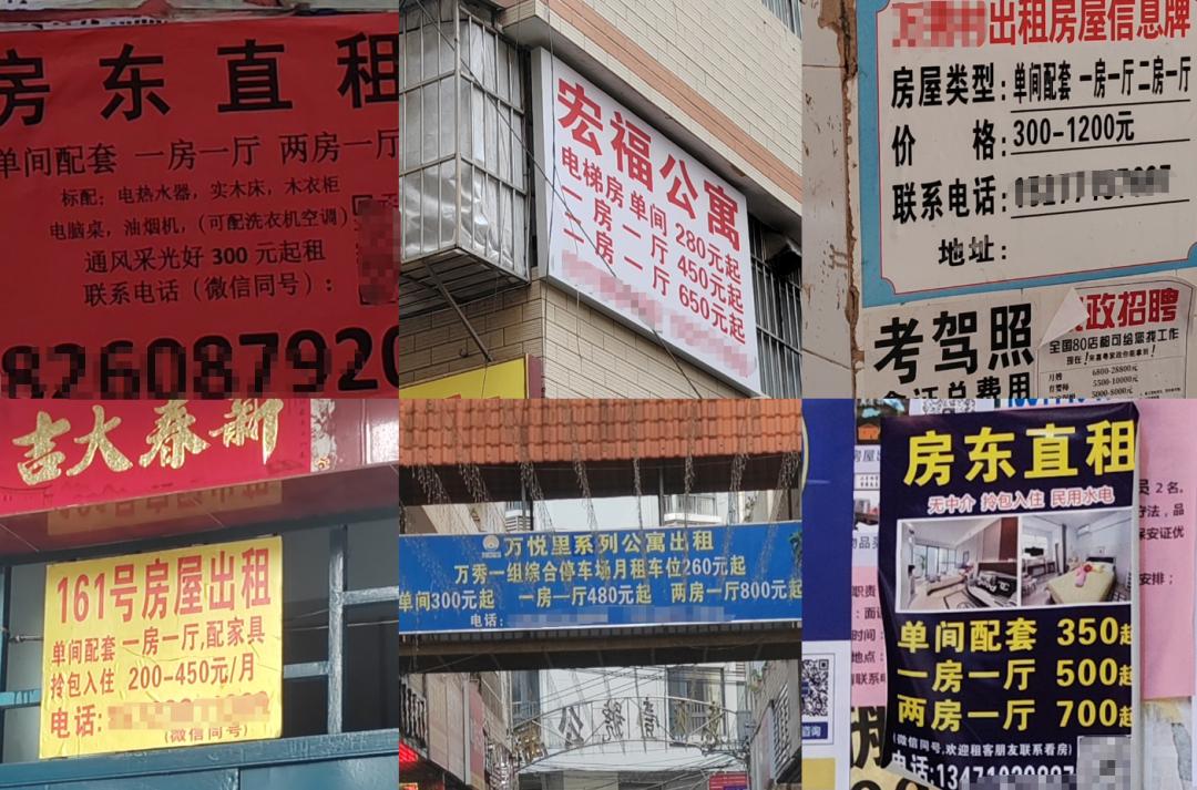走在南宁城中村的小巷里,各种招租广告牌随处可见,甚至不少房东在广告牌上标注了价格,单间价格普遍在200元/月—450元/月左右,一房一厅价格450—600元/月,两房一厅650—1200元/月。