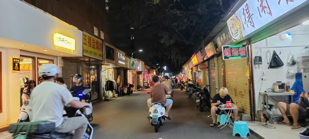 晚上肚子饿了,三两步下楼就能填饱肚子,高山土豆、槐花粉、宜州烧烤、老友粉……恨不得有个256g的胃。