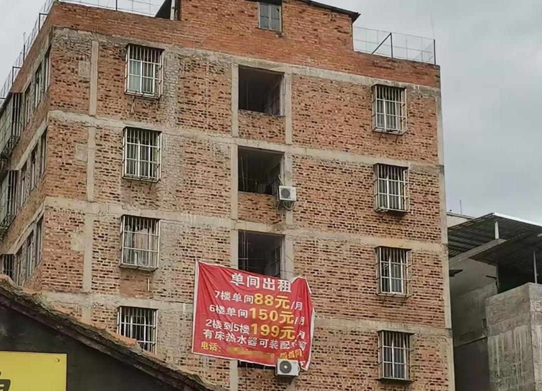 在吃烧烤的时候,友仔给我看了一张图,说南宁万秀村的自建房,88块钱就能租一个单间,楼层低一点6楼单间150元/月,2楼—5楼199元/月。