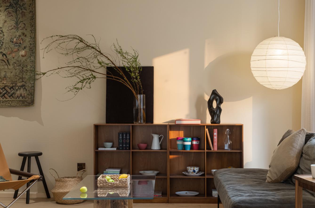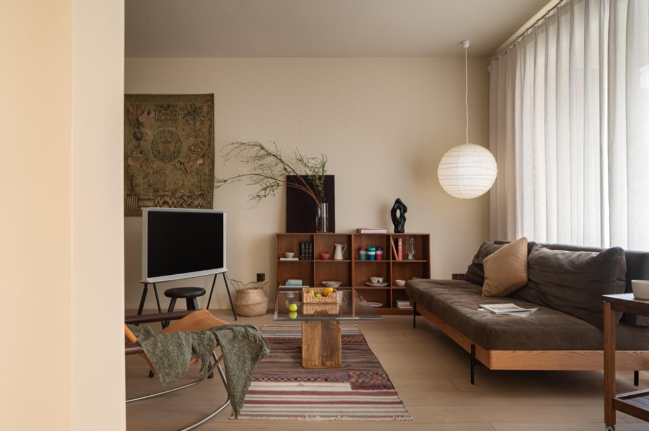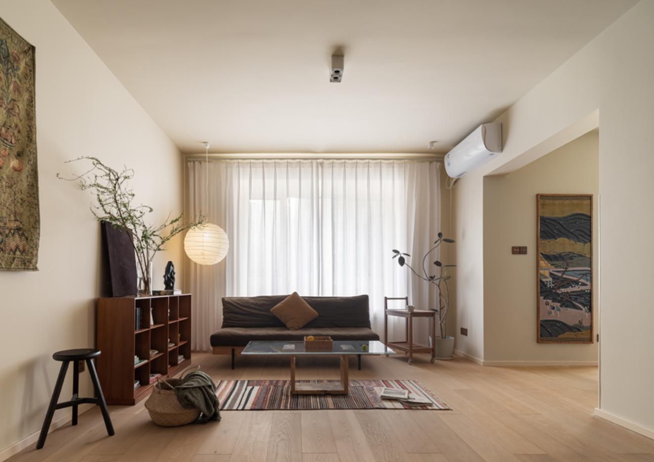 轻盈的中古沙发、带有日式情怀的纸吊灯、定制的手工茶几、以及轻柔的梦幻帘,每一件单品的选择似乎都是空间中的主角,不断诉说着生活的美好。