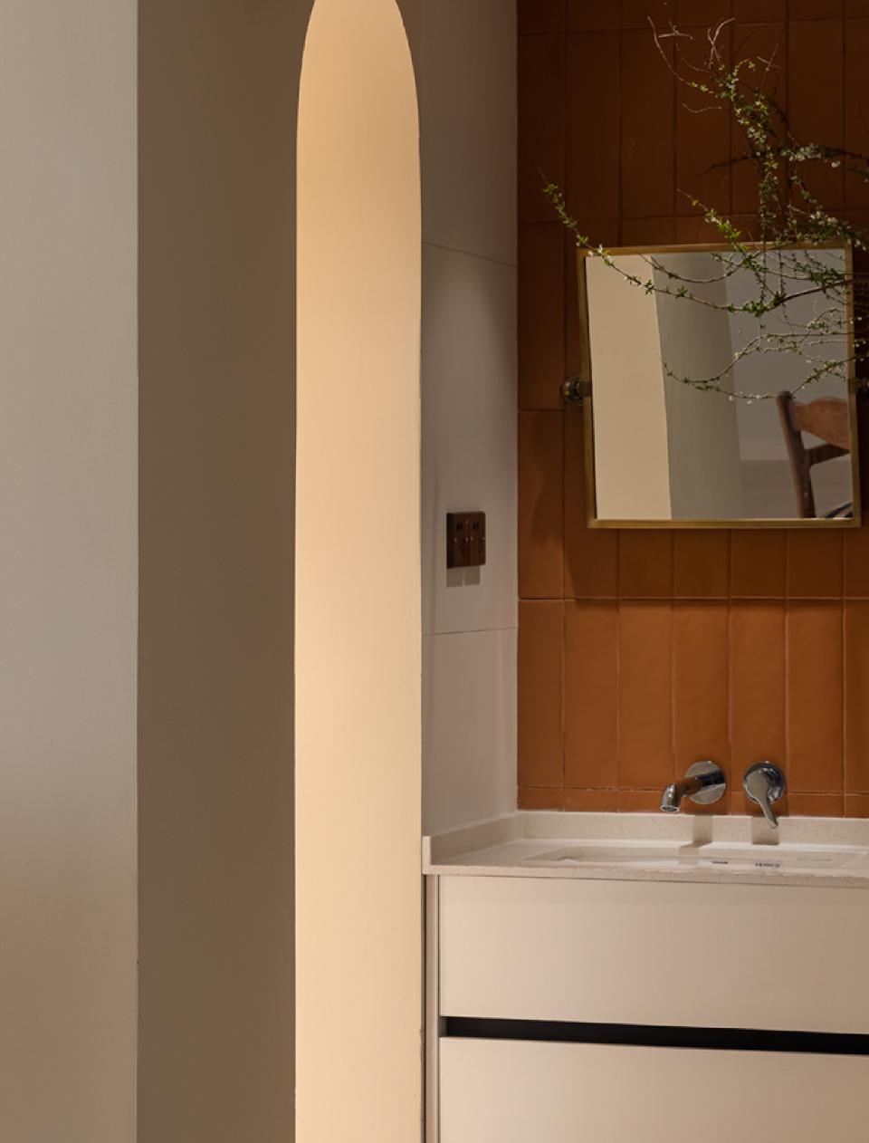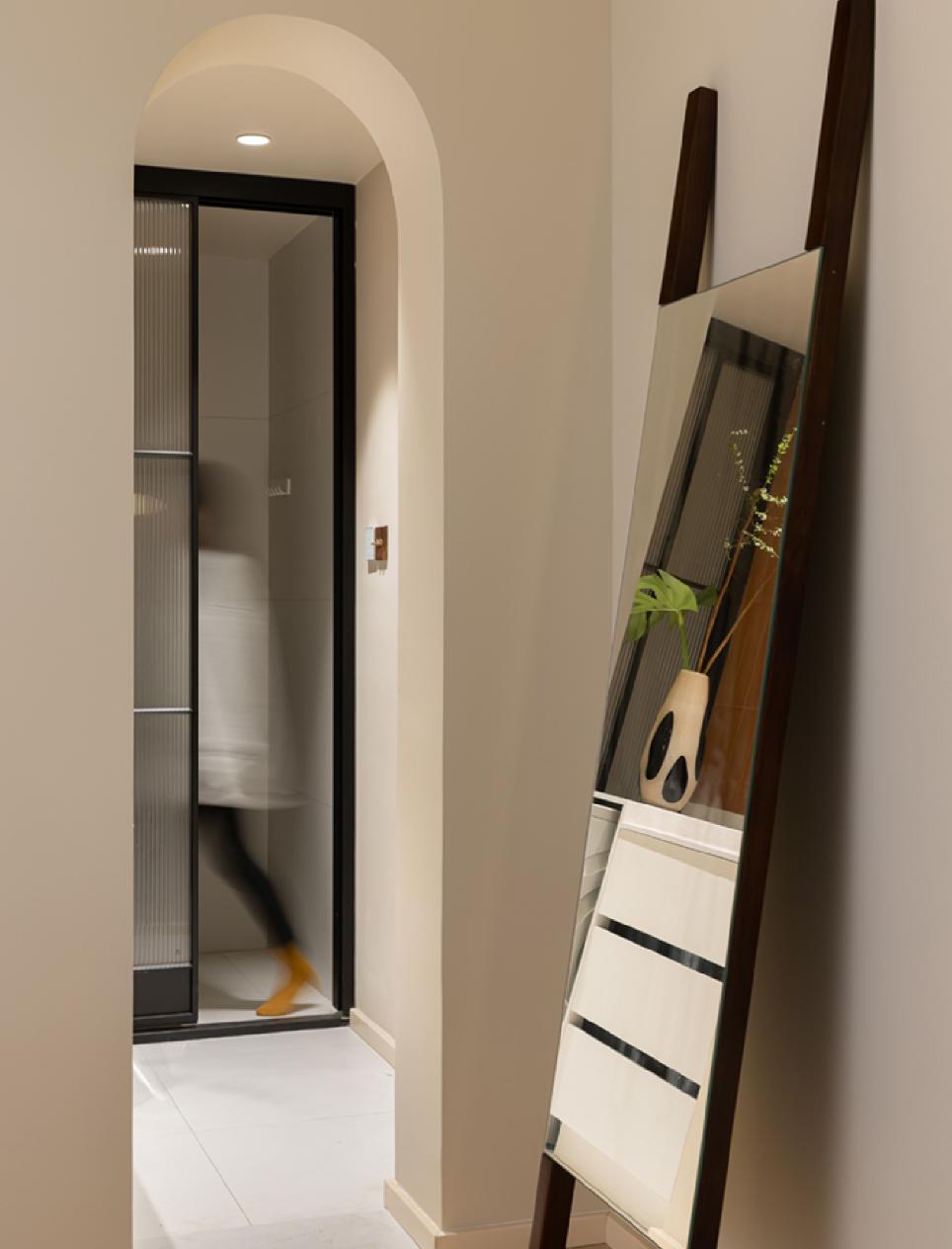 卫生间墙体在原有的基础上,进行了延长处理,并以此做了干湿分离布局,让日常生活更加高效,且提升了空间的整洁度。