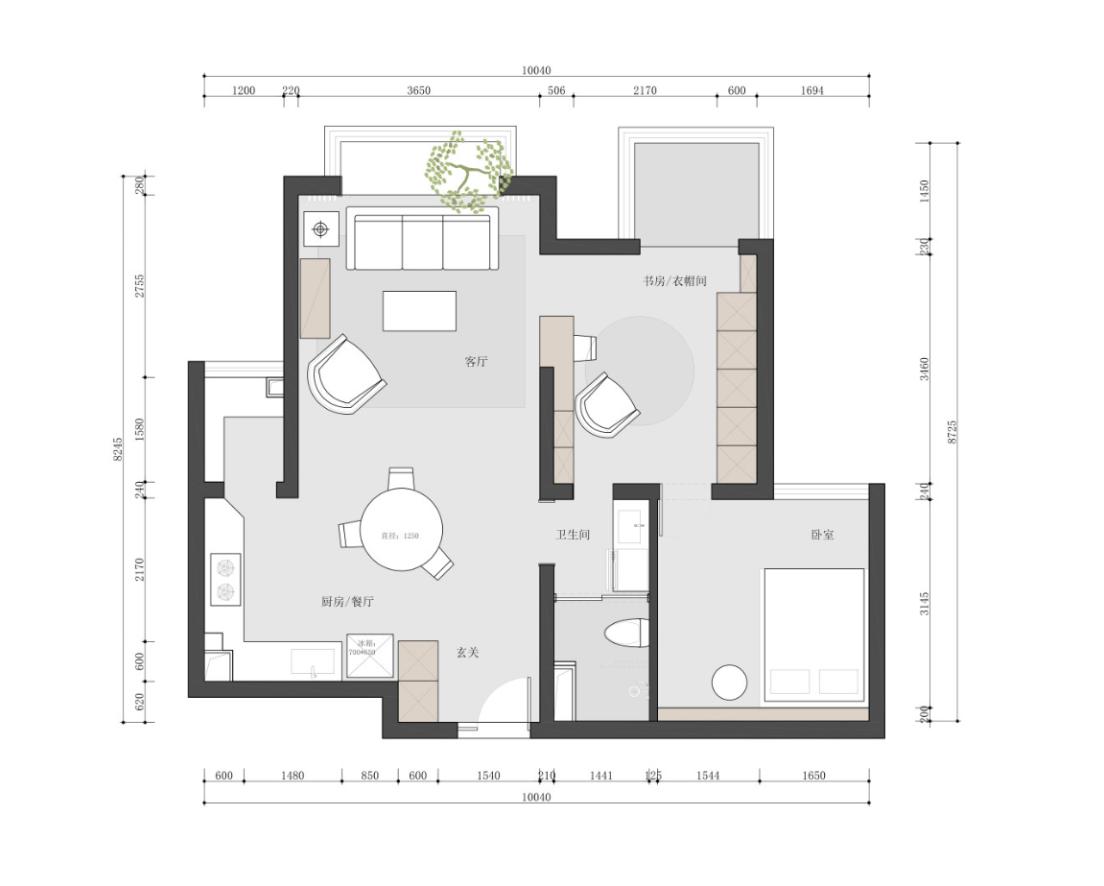 2、原主卧与客厅打通,并改成多功能间,形成洄游动线。