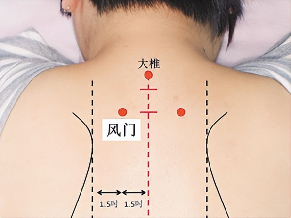 风门穴在哪里呢?说出来你可能不信,就在你低头时,脖子后面那个最突出的骨头(大椎穴)往下数两个椎体(大概两横指),再往两边各旁开1.5寸(大概两横指)的地方。