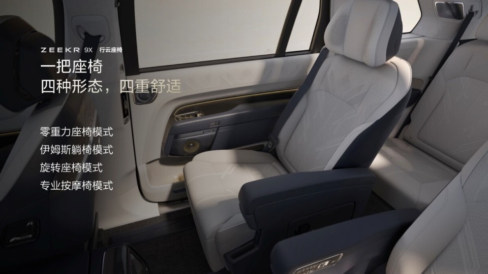 极氪9X搭载全球首创的「行云座椅」