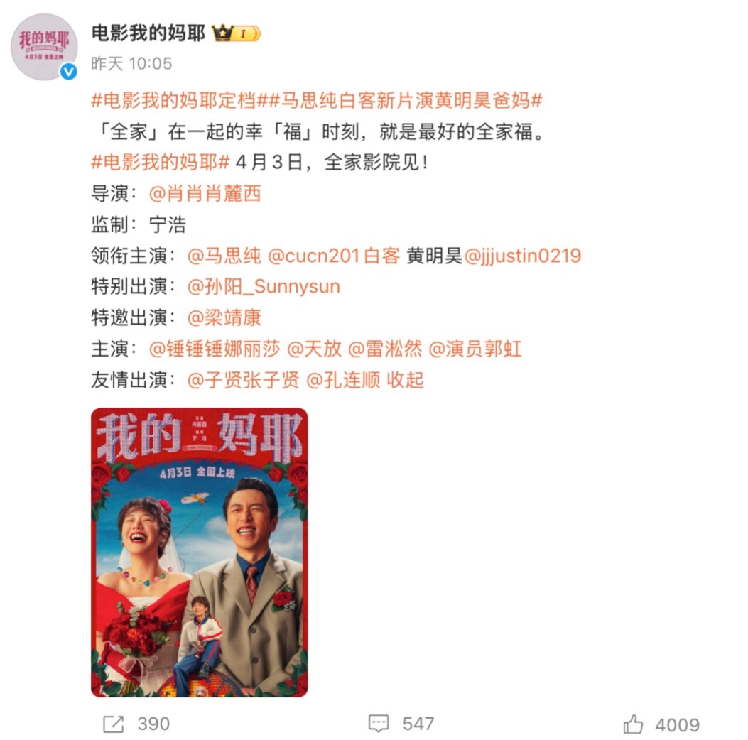 值得一提的是电影的档期避开春节档的巨头厮杀,精准卡位清明档,《我的妈耶》从定档起就占尽天时地利人和。