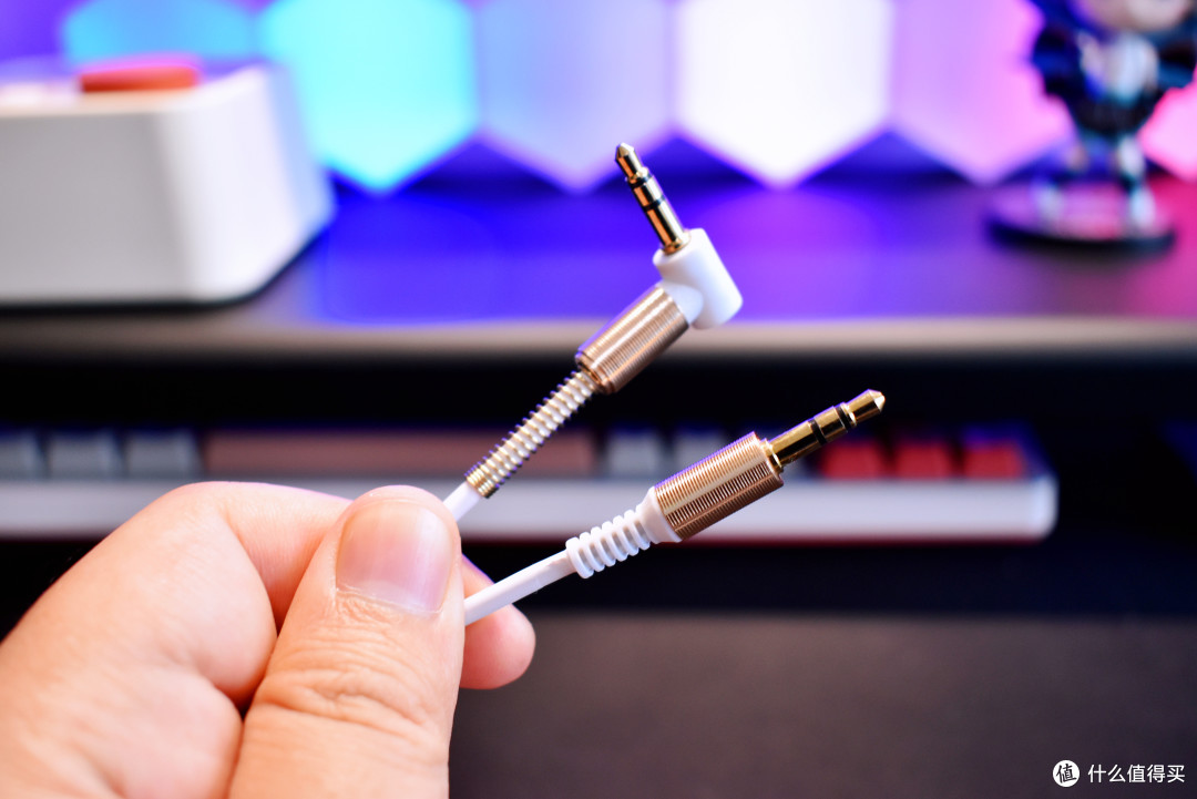 附送的 AUX 音频线,插头采用了金色金属加固,看似简单的设计,却赋予了这根小小的音频线不俗的高颜值和耐久性,尽显精致。大家可以看出赛塔林 N100 在配件设计上同样展现出了非凡的设计感与细节把控。