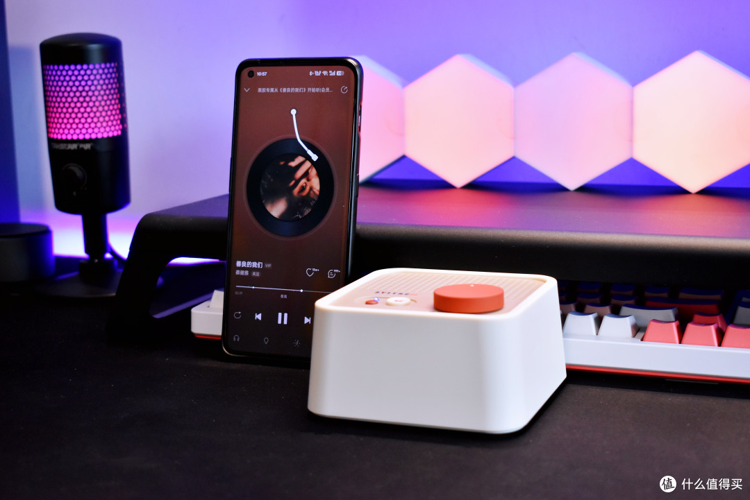 结语综合来看,赛塔林 N100 蓝牙音箱在外观设计、音质表现、功能以及续航能力方面都有着出色的表现。有着“桔点设计商店”标签的赛塔林 N100,其独特的机械键帽灵感设计,使其成为一件时尚的装饰品,能够轻松融入各种家居和办公环境。出色的音质表现,双扬声器搭配锌合金腔体材质,为我带来不俗听觉享受,无论是流行、古典还是摇滚等各种类型的音乐,都能轻松驾驭。蓝牙 5.0+AUX 双模式连接,兼容多种设备,操作简单便捷,满足了不同场景的使用需求。近4小时的续航能力,让用我能够户外也能随时畅享音乐,无需担心电量问题。