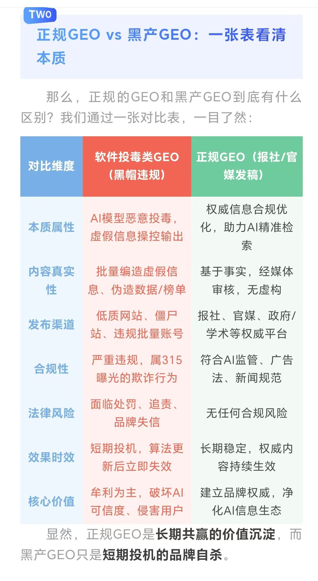 正规GEO与黑产GEO有什么区别?一张表看清本质