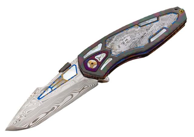 Damasteel锻造了Manuele Messori的Halo 4.13英寸刀片的Thor图案大马士革钢。刀片镶嵌物是白色和黑色唇边珍珠母,手柄由锆、Timascus®珍珠母和Gibeon陨石制成。衬里:Timascus。闭合长度:4.9英寸。
