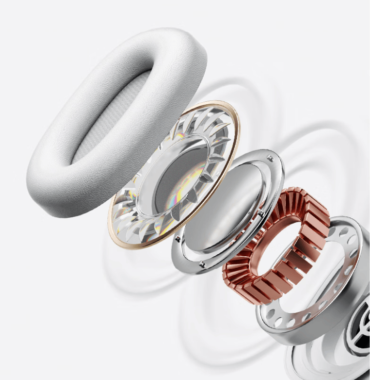 ●影音体验:说到核心性能,AirPods Max降噪和音质都超棒。主动降噪配上6麦克风阵列,能聪明地识别地铁声、人声这些不同噪音,精准削弱干扰,一键就能享受安静。还有那定制动态驱动单元,调音调得三频均衡又细腻,再加上空间音频技术,看剧看电影听歌,都跟身临其境似的,太爽了!