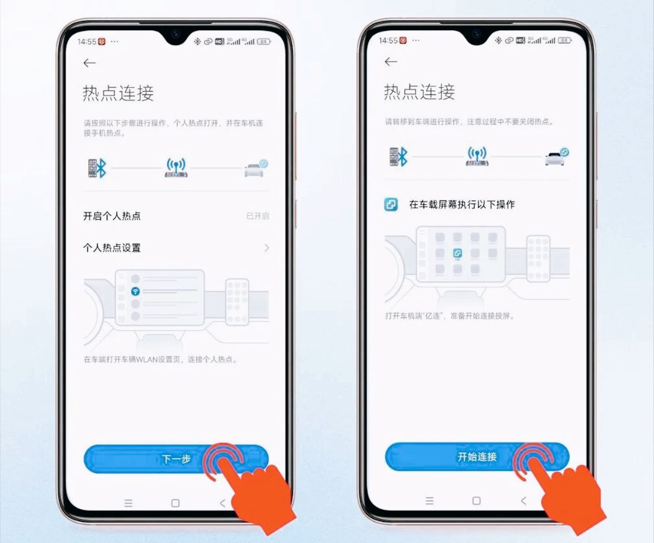 这步操作的核心在于:让手机的蓝牙和热点同时进入战斗状态。