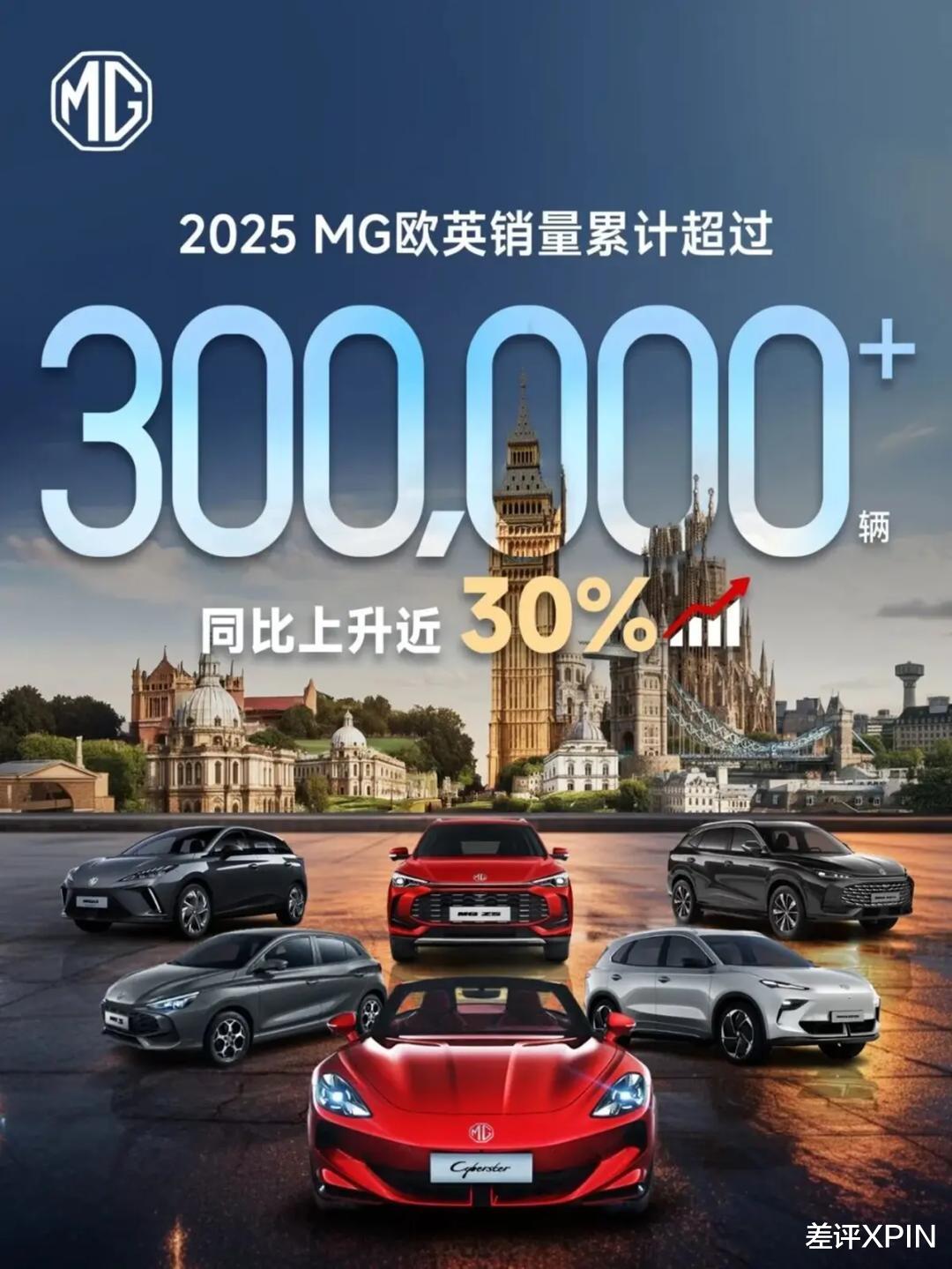但换到海外,你会发现事情完全不一样。2025 年 MG 在海外买了将近 100 万辆,英国和欧洲就卖了 30 多万,且燃油车占到 40% 左右。