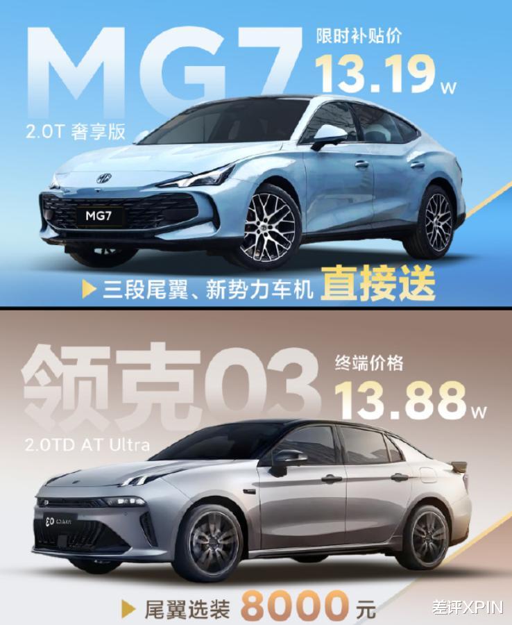 而且同样的 2.0T 动力,MG7 便宜 7 千块钱,还标配一个 8000 块钱的小尾翼,如果你不纠结领克身上的沃尔沃同款发动机,那 MG7 真是香爆了。