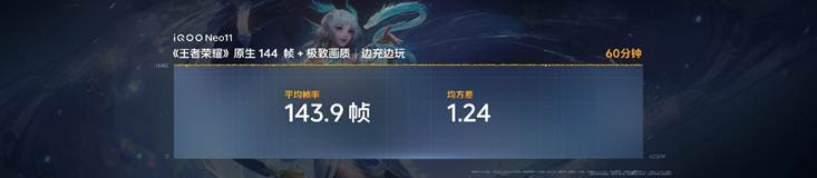 同时,Neo11 通过 KPL 比赛用机 144 高帧测试认证,首批适配《王者荣耀》原生 144FPS 高帧模式,“玩王者就选 iQOO”准没错。