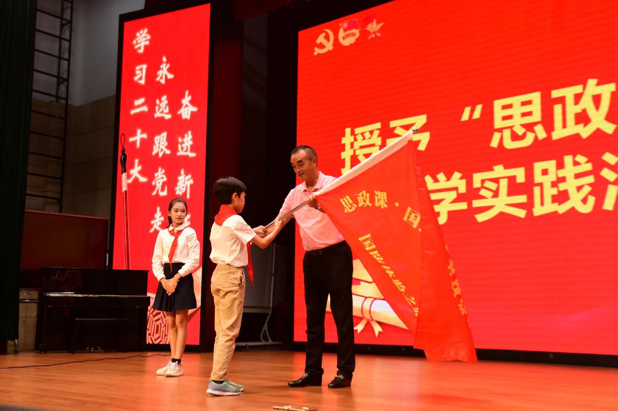 活动尾声,学校为三位战士颁发“国防知识思政课校外辅导员”聘书,并向学生代表授予“思政课·国防教育研学实践”旗帜,让英雄精神与红色基因在新一代心中生根发芽。
