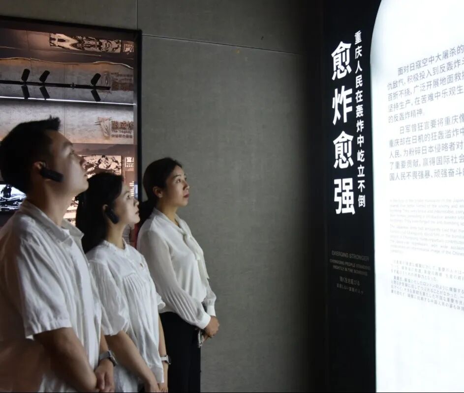 在专业讲解员的引导下,全体人员通过展馆内的历史背景介绍,系统梳理了重庆大轰炸的历史背景与时间脉络,从宏观层面理解了抗战历史的厚重意义,为后续的深度参观奠定了认知基础。