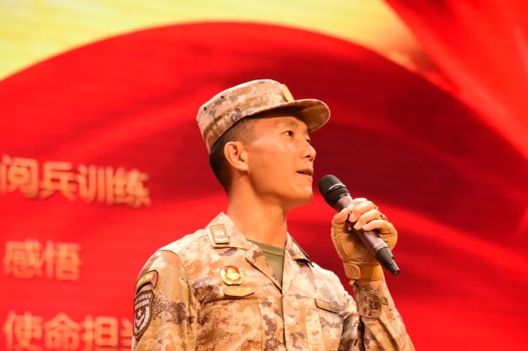 课堂上,师生共同观看了爱国主义与国防教育主题视频。三位优秀战士现场展示了阅兵风采,并围绕国防知识、阅兵背后的故事以及强军精神,为同学们带来了一堂震撼而深刻的思政课。他们以亲身经历讲述训练中的艰辛与荣耀,用一个个鲜活的故事,让“国防”二字变成了可感可知的责任与担当,激发了在场学生强烈的民族自豪感和爱国热情。