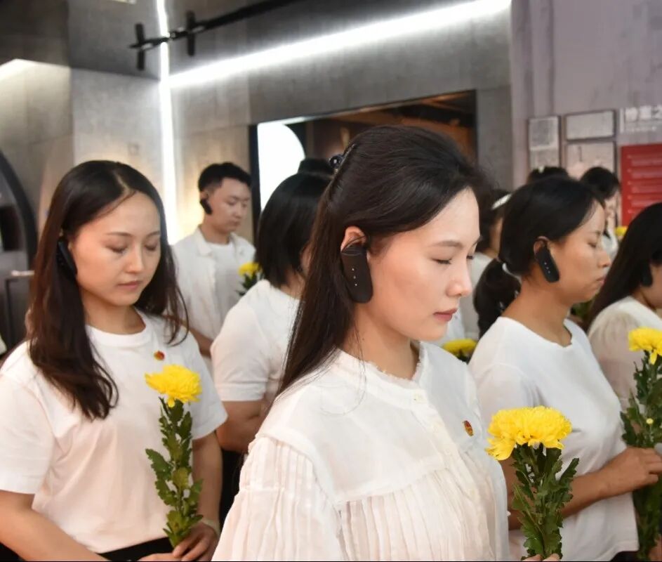 默哀献花仪式上,全体人员手持菊花,肃立默哀,向遇难同胞致以最深切的哀悼。这一刻,时间仿若凝固,对历史的敬畏和对和平的珍视在每个人心中激荡回响。
