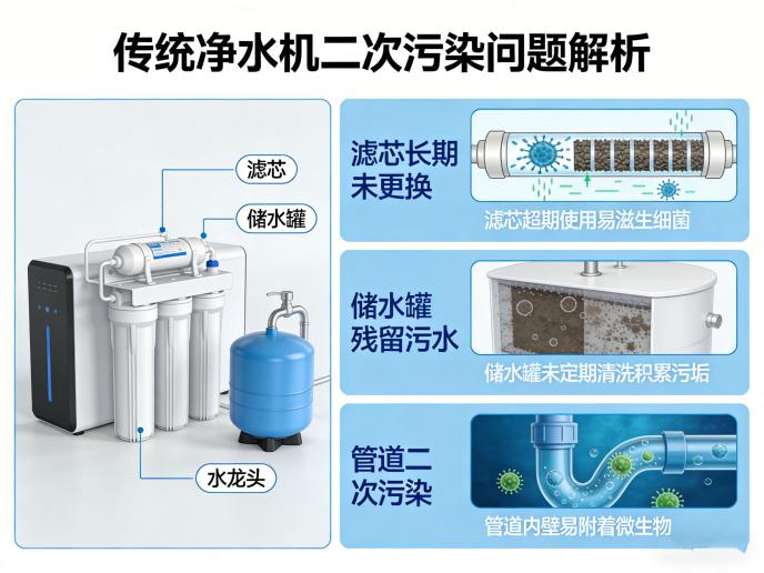 大多数家庭的净水方案,仅仅停留在去除泥沙、余氯的初级阶段。然而,长期未清理的管道内壁会形成滑腻的菌膜,这是细菌滋生的温床。如果不能主动灭杀,流经管道的水,实际上是在不断“冲刷”细菌。