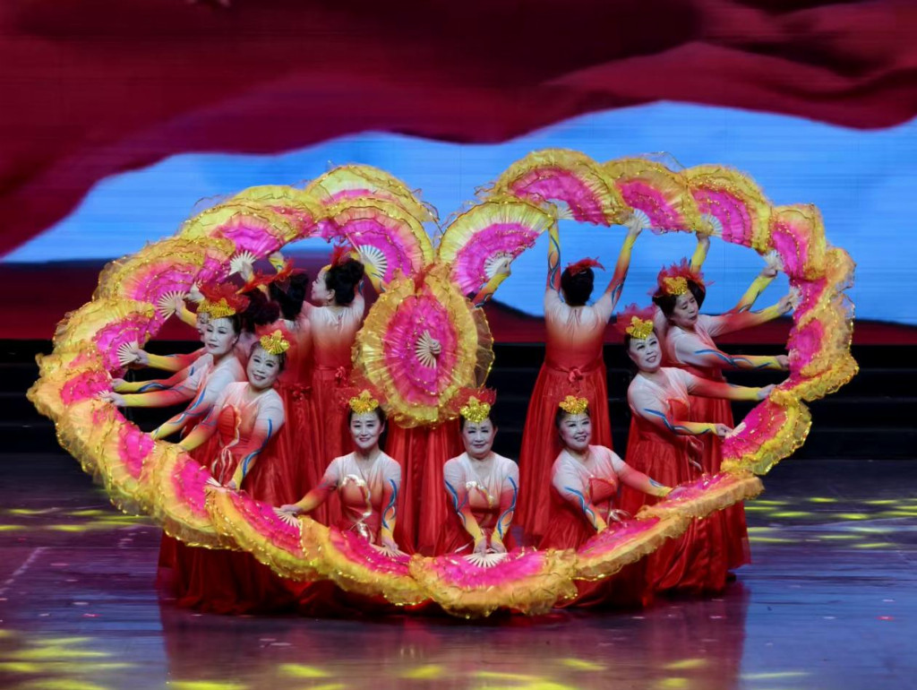 颁奖之后,经典入围节目展演精彩上演。东北秧歌舞非遗文化传承保护工作委员会带来的秧歌舞拉开展演序幕,随后,器乐联奏、舞蹈、二重唱、京剧走秀等20个优秀节目依次登场。演员们用悠扬的歌声、灵动的舞姿、精湛的技艺,展现出银龄群体的活力与风采,赢得现场观众阵阵掌声。展演期间,播放的赛事回顾视频,带领大家重温数月来的精彩瞬间,感动了在场每一个人。最后,歌伴舞《祝福祖国》为整场盛会画上圆满句号,表达了银龄朋友们对祖国的深情祝福。