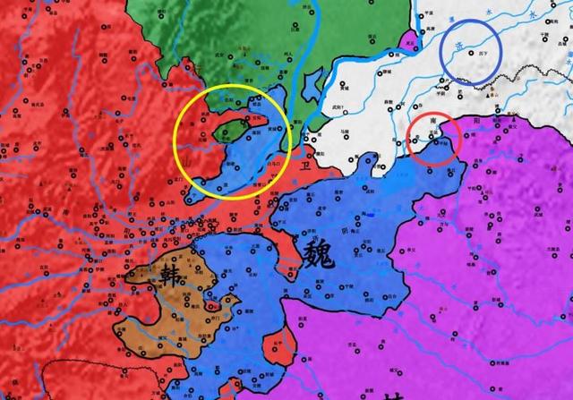 黄圈为邺邑、朝歌、安阳一带,不久后被秦、赵占领。