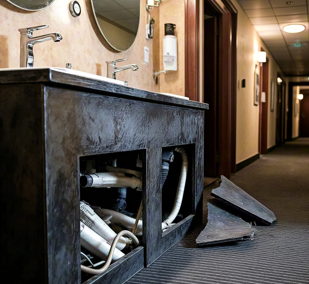定期检查维护:酒店需建立设施巡检制度,对潜在风险进行排查,例如洗手台固定件是否松动、玻璃制品是否存在裂纹等。