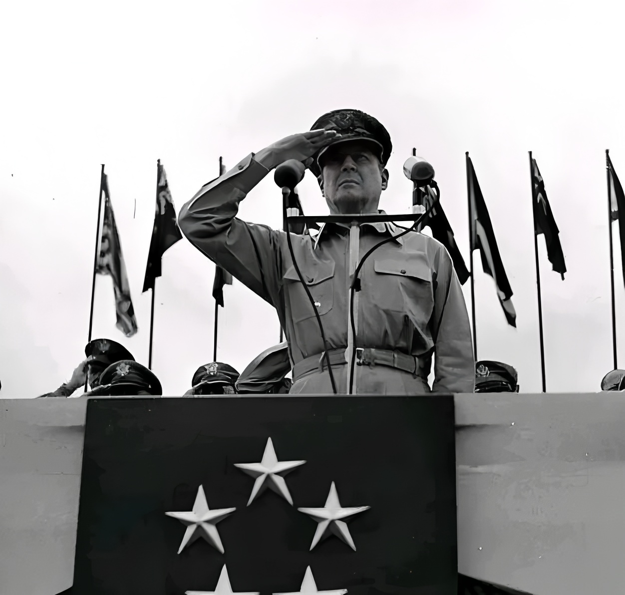 这位刚刚被杜鲁门总统以一种近乎羞辱的方式,通过一纸电令解除一切职务的五星上将,此刻正襟危坐。他身着精心熨烫的军装,胸前的勋章熠熠生辉,脸上依旧是那副标志性的、混合着高傲与威严的表情。仿佛他不是来接受质询的,而是来接受欢呼的。
