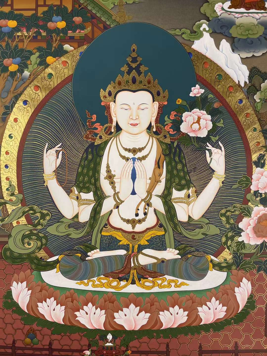 接下来请朋友们欣赏一组沃唐卡编号为173-182295的四臂观音唐卡: