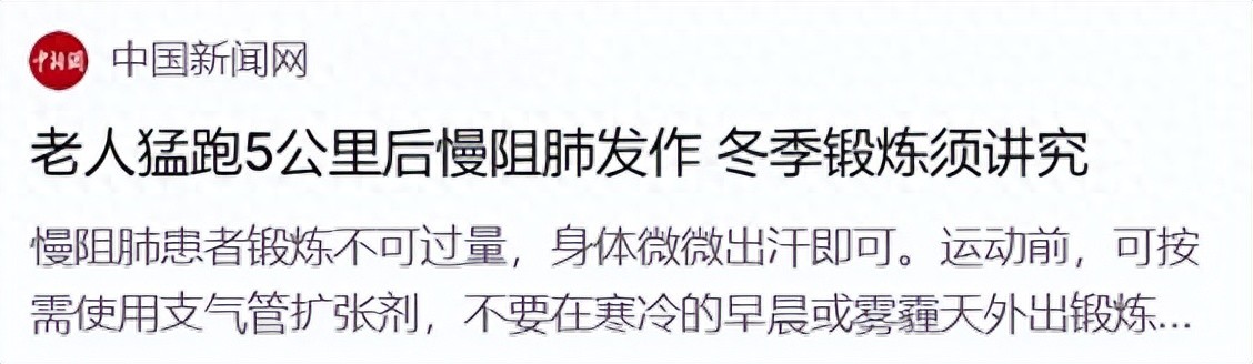 最近,患者赵阿姨在病友群里分享了一段让她忧心忡忡的新闻:“刷到一个视频,说一位老人跑完5公里后慢阻肺病急性发作、进了医院,吓得我现在都不敢运动了。本来想强身健体,怎么反倒伤了身体呢?”