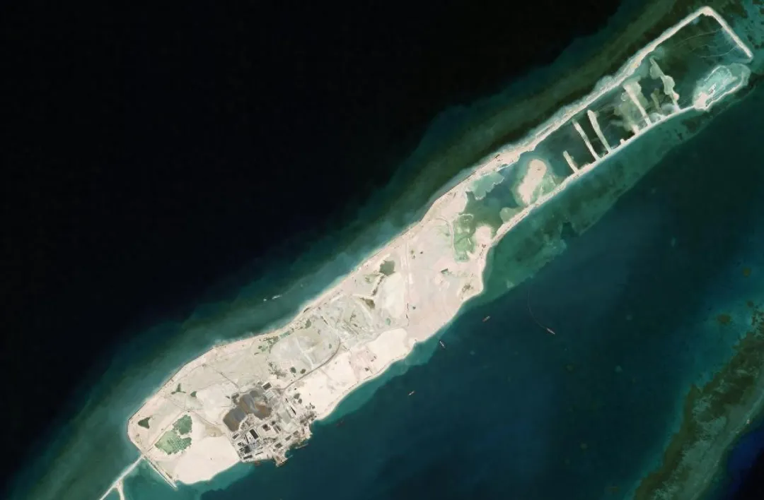 在南中国海,越南一边派出海上民兵搞“灰色地带”骚扰,一边在柏礁疯狂填海造岛,修筑3公里长的重型军机跑道。