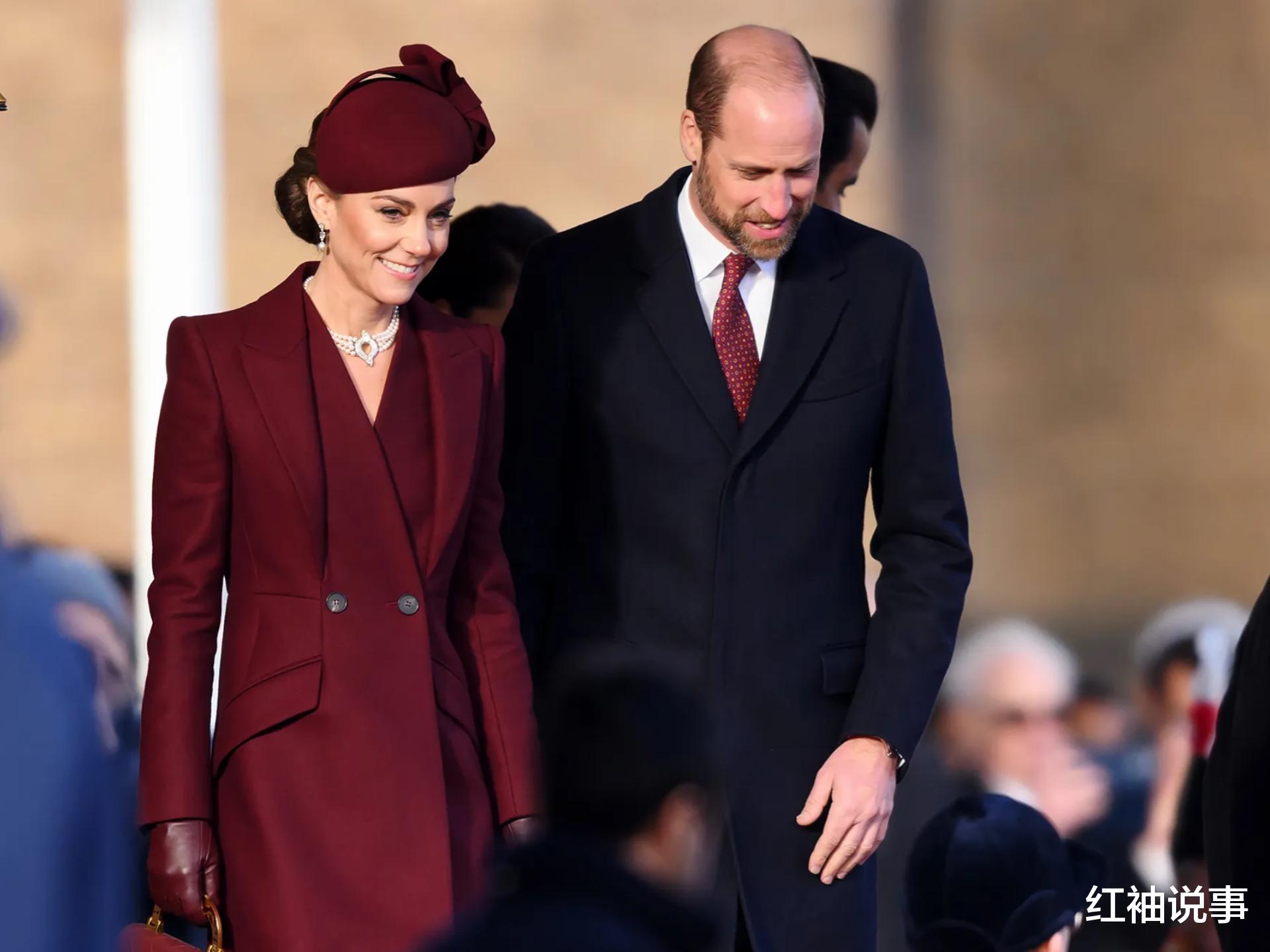 凯特·米德尔顿在迎接特朗普总统时,从头到脚大胆地选择了酒红色,尽显优雅风范。她身着一件酒红色艾米莉亚·威克斯特德大衣连衣裙,搭配伦敦品牌简·泰勒的配套帽子,手中拎着一个备受喜爱的香奈儿顶把手包,始终坚守着自己的皇家着装规范。