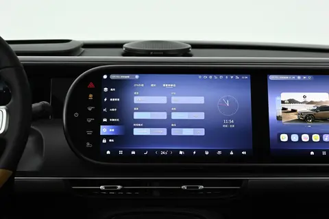 坐进车内,这款车给人的印象就是“高级”。这种“高级”不是那种堆砌豪华材质的浮夸,而是细节处透着精致。中控台、门板上摸得到的地方,几乎都是软乎乎的材质,官方说软质包覆率有85%。座椅是Nappa真皮的,手感细腻,坐上去包裹性很好,不像有的车座椅硬邦邦的,开久了硌得慌。特别显眼的是三块连在一起的屏幕:10.3英寸的全液晶仪表盘,加上两块13英寸的OLED中控屏和副驾娱乐屏。屏幕分辨率很高,显示特别清晰,白天阳光直射也不会反光。主驾看仪表盘、中控屏,副驾能单独用娱乐屏看电影、听歌,互不干扰,长途坐车的时候,副驾再也不会觉得无聊了。车机系统用的是AMD V2000芯片,这可是桌面级的高算力芯片,操作起来跟用高端手机一样流畅。滑动屏幕、切换应用,一点卡顿都没有。我试着连续打开导航、音乐、空调,系统依然反应迅速,这点比我之前试驾的某款国产车强多了。智能语音助手必须夸一夸。支持“可见即可说”,看到屏幕上的功能,直接说“打开它”就行,不用死记硬背指令。而且能分区域唤醒,主驾说“调24度空调”,就只会动主驾这边的温度;副驾说“打开窗户”,也只开副驾车窗,不会像有的车那样,一说话全车功能乱跳。我还试了试连续对话,问完“今天天气怎么样”,接着问“明天呢”,它都能接得住,不用每次都喊“你好,smart”,这点对家里有老人的特别友好。细节配置也很到位:256色氛围灯能跟着音乐节奏变颜色,晚上开车的时候特别有感觉;前排有50W无线充电,手机放上去一会儿就充不少电,再也不用到处找充电线;内置行车记录仪清晰度很高,还能直接在车机上回看,万一有点小剐蹭,调记录特别方便。