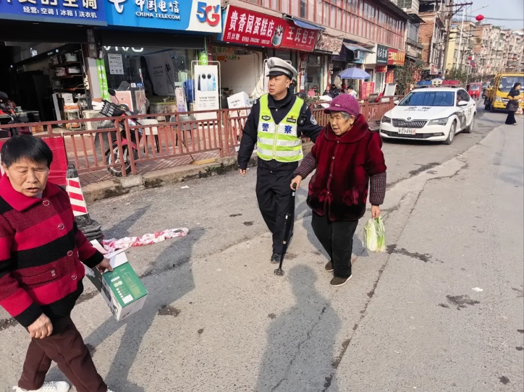 搀扶老人过马路2月20日,赤水交警在官渡镇王爷庙路段执勤时,发现一位拄拐杖老人在路边徘徊不敢过马路。民警立即上前安抚,小心搀扶,示意车辆减速避让,安全护送老人通过车流。现场群众纷纷点赞。