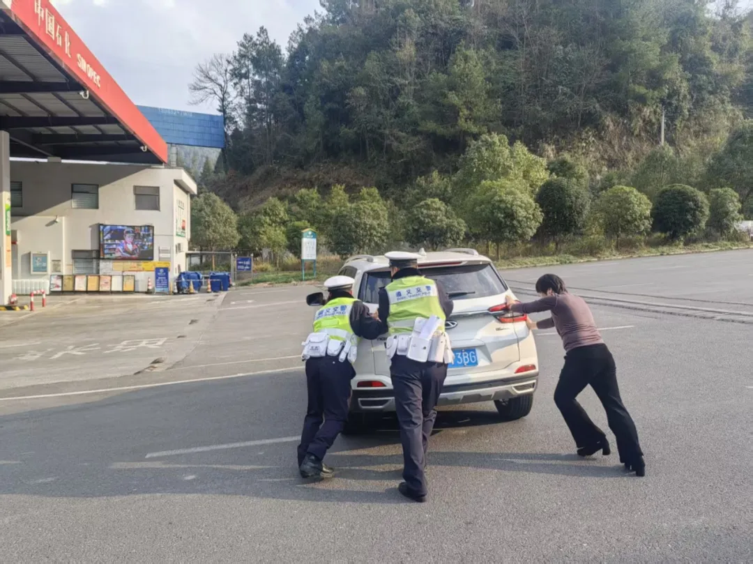 车辆抛锚路中,合力推车保畅2月21日10时许,正安交警巡逻时发现一辆车辆抛锚路中,巡逻人员帮助驾驶员将车推至安全地带;2月19日,城区三大队发现电动三轮车电量耗尽在隧道内推行,立即警车压速护航至安全区域;2月19日,高铁站下一辆出租车突发抛锚,执勤警力合力推车至安全区域;2月18日,播州大道一辆三轮车故障,执勤警力联合住交局同志推车除险;2月17日中午,城区一大队民警在南山公墓帮助故障车辆推移至安全区域;2月17日16时许,高速六大队民警推车300多米,帮助油料耗尽的渝A牌车辆至加油站;2月17日上午,会址警区执勤交警帮助断电熄火的新能源出租车联系施救车拖至修理厂……