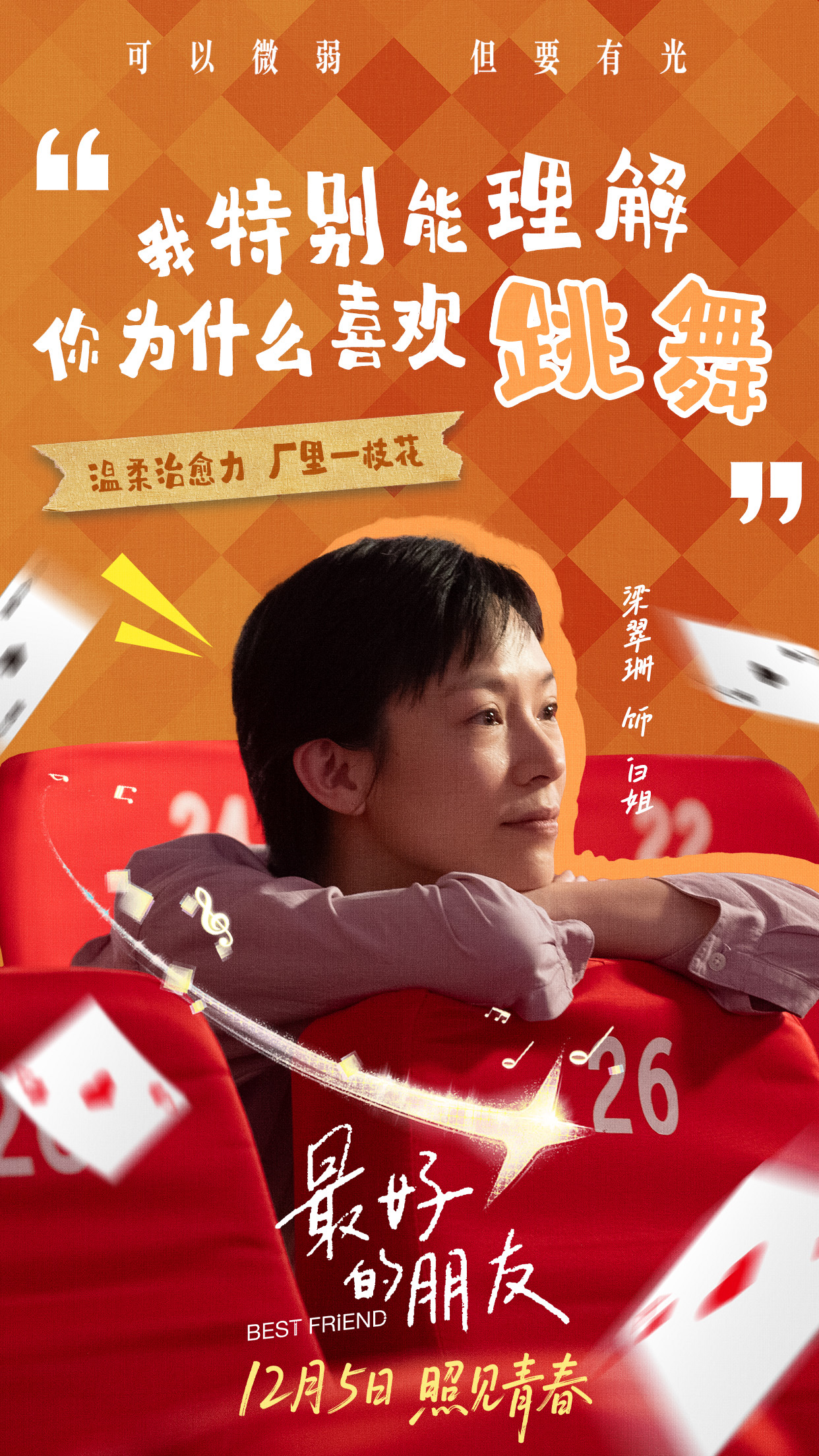 《最好的朋友》里的青春从不是轰轰烈烈的大梦,是归姐这样的普通人,把平凡日子过出温度的细碎。新物料里扑克牌和音符的跳跃,像她藏在生活里的小雀跃 —— 原来温柔的人,也揣着这么生动的喜欢。