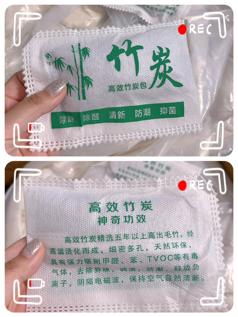 楼主一开始还担心新床垫会有异味,没想到打开包装后,床垫基本没有味道,直接就能使用。另外,包装里面还附赠了2个高效竹炭包,可以放在家里除味抑菌,二次利用起来。