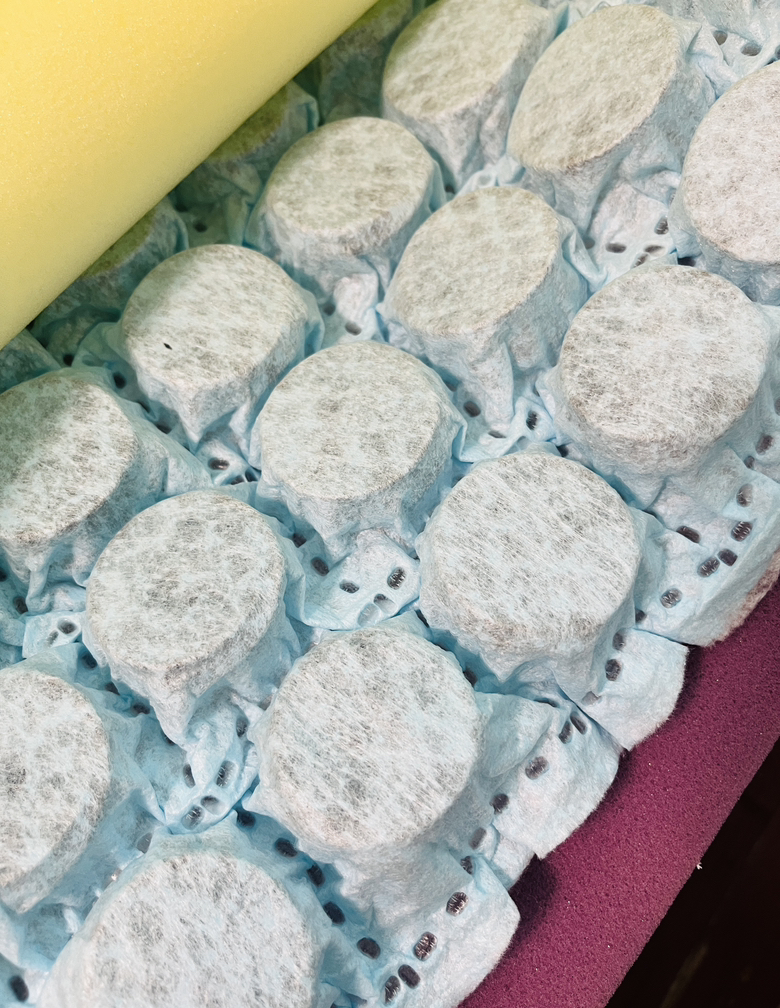 仔细观察的话,在没有拆封的情况下,甚至可以看到里面的独立袋装弹簧被抽真空压缩的形状。而且拆包床垫的过程也很解压,整个床垫会一点点慢慢膨胀打开。