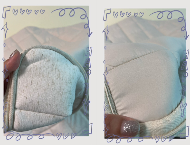 其中黄色的海绵是舒缓亲肤棉的材质,具有柔软贴合、吸湿透气、均衡释压的特色,相对来说更柔软舒适一些;