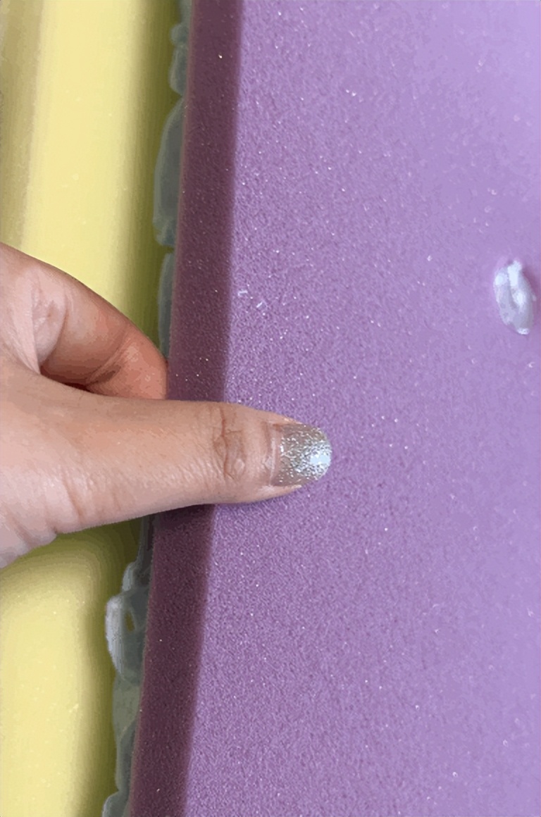 而紫色的海绵则是高弹海绵,具有高度回弹、护脊支撑、柔韧抗压的特色,相对来说支撑性更好一些。