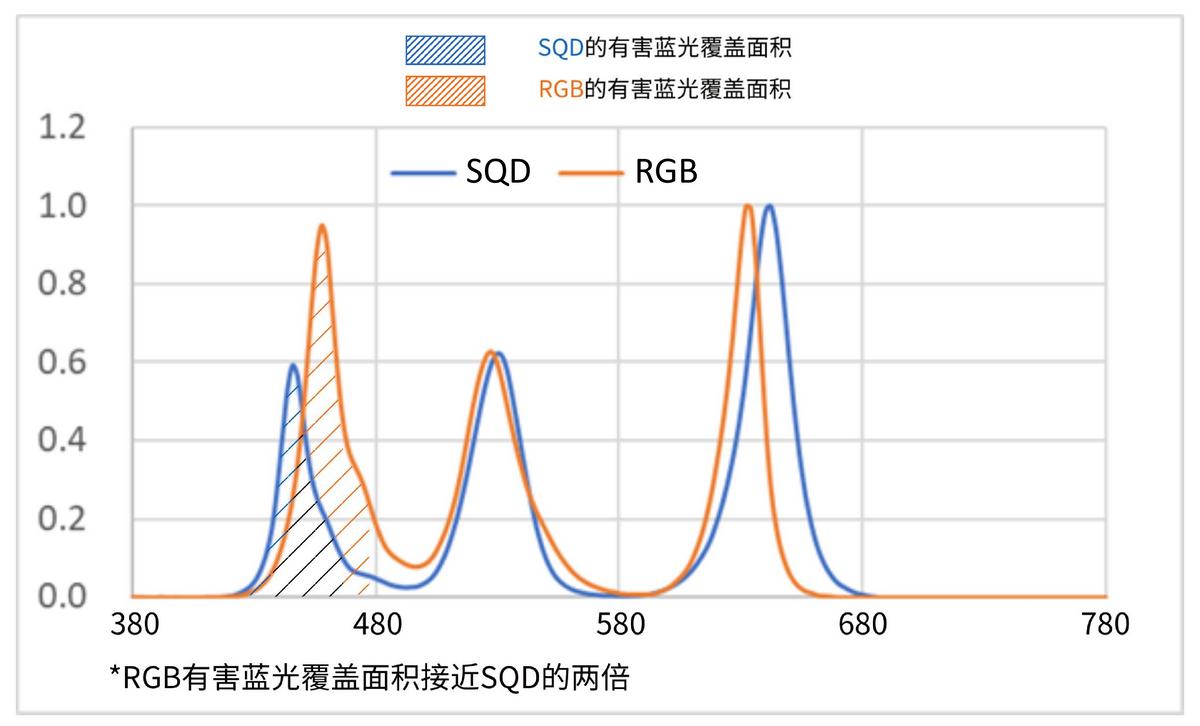 先从家庭用户最关心的防蓝光说起。咱们可能很多人知道要买防蓝光电视,但是对此并没有正确的认知。依据国标GB/T20145-2006光生物安全标准,415nm-480nm短波蓝光是伤眼关键,而蓝光危害的核心是看总能量密度,谨记!抛开能量谈蓝光防护,就宛如“离开剂量谈毒性”,指定不靠谱。而T7M Pro全系搭载SQD-Mini LED技术,不盲目偏移蓝光波段,而是从源头降低有害蓝光总能量、缩小蓝光光谱覆盖面积,有害蓝光能量远低于RGB方案,从实测数据来看,RGB有害蓝光能量接近SQD的两倍。更成熟的SQD技术不仅达标国标安全线,更做到舒适级护眼,儿童网课、老人追剧、熬夜观影都能大幅减轻眼部负担。