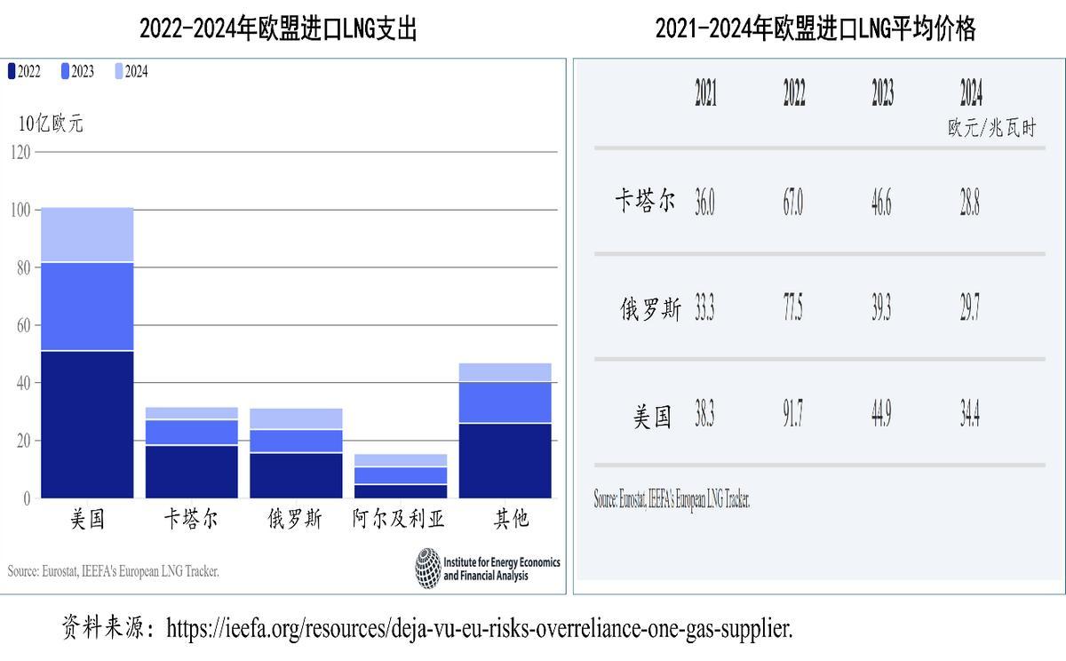 作为2025年7月欧盟与美国达成的贸易协议的一部分,欧盟计划在2028年前从美国购买7500亿美元的能源,该协议实际上将欧盟的能源供应绑定在了一个供应商身上,这可能会危及能源安全,并破坏减排计划。在2025年9月于米兰举行的“加斯泰克”会议以及11月在雅典举行的“跨大西洋能源合作伙伴关系”(P-TEC)会议上达成的液化天然气供应协议之后,欧盟对美国液化天然气的依赖程度将进一步加深。