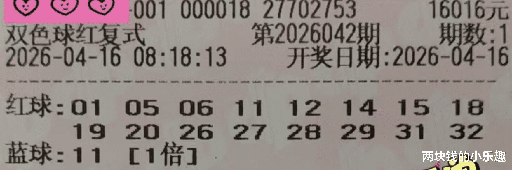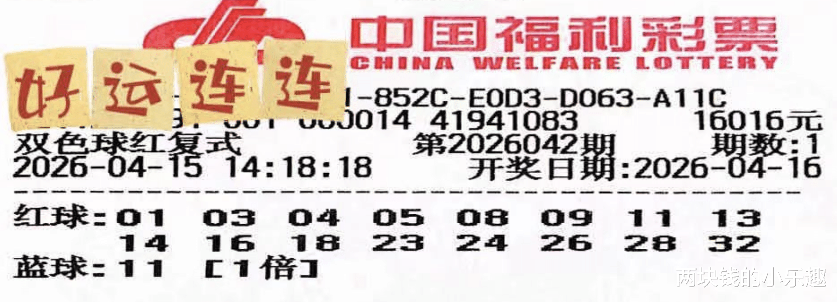 以上就是本期复式专区的代表,两张同规格16+1的1.6万经典复式双胞胎,虽然之前团队每期都是贡献两张1.6万复式,但从另外一张降级成15+1后,就再也没看到复式团队分享1.6万复式双雄了,没想到团队本期又分享出两张,让大家感到惊讶的同时,也让大家投来佩服的目光,这张并不是15+1复式团队回归1.6万的规格,而是新晋团队成员出手了,而这一出手便是顶级规格,不得不佩服团队的实力和魄力,比较有趣的是,两张票的蓝球不约而同的都选了11,是遗漏已有19的冷门了,不过和上期开出的走势相仿,不知道这对1.6万复式双胞胎是携手共赢,还是一同空车。