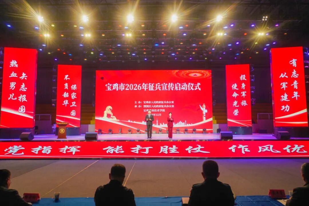 12月5日,宝鸡市 2026 年征兵宣传启动仪式在宝鸡职院举行。宝鸡市征兵工作领导小组副组长刘云臣宣布活动启动。宝鸡职院党委书记薛建恩出席活动并致辞。市委宣传部调研员殷军贤、市教育局相关领导讲话。