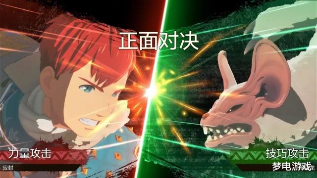 战斗顺序依据角色的速度设计,在速度相近且目标“对应”时,则会触发《物语》系列永恒不变的正面对决环节。由于无法在决策阶段看到敌人的具体行为,仅能根据敌人的状态进行预估,这一环节常被玩家戏称为“猜拳”:所有的技能都具有力量、技巧、速度的分类,并循环克制。