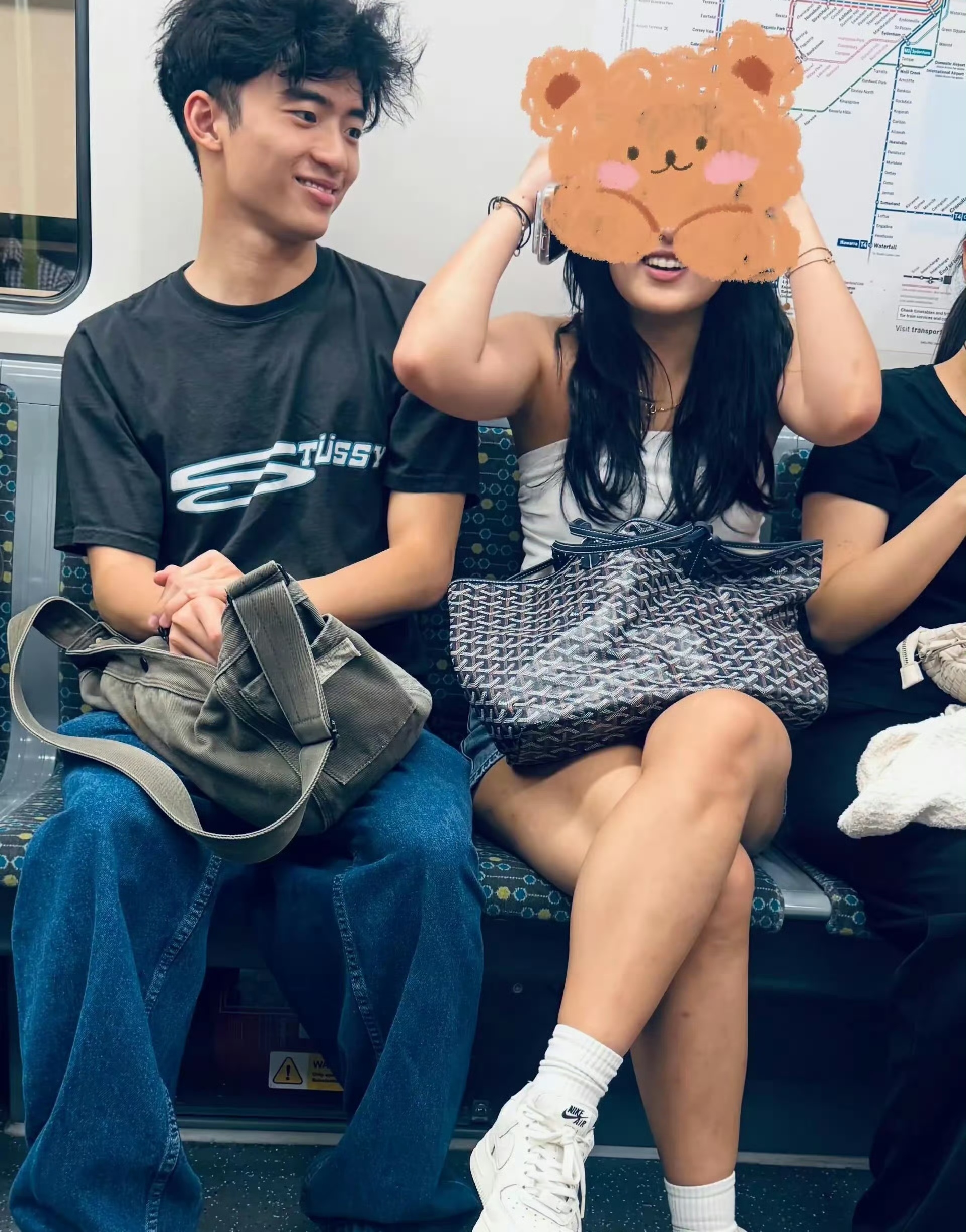 有网友拍到Lucas与一位年轻长发女生一同乘坐地铁出行。