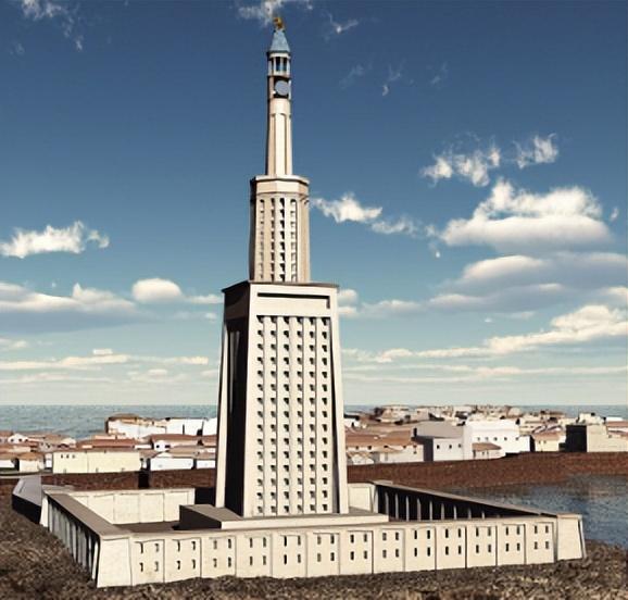 灯塔由古希腊建筑师索斯特拉特设计,是一座由白色大理石和花岗岩建成的巨大建筑物,灯塔的高度为约130米,是古代世界中最高的建筑物之一。